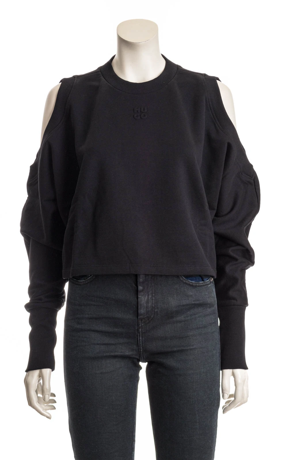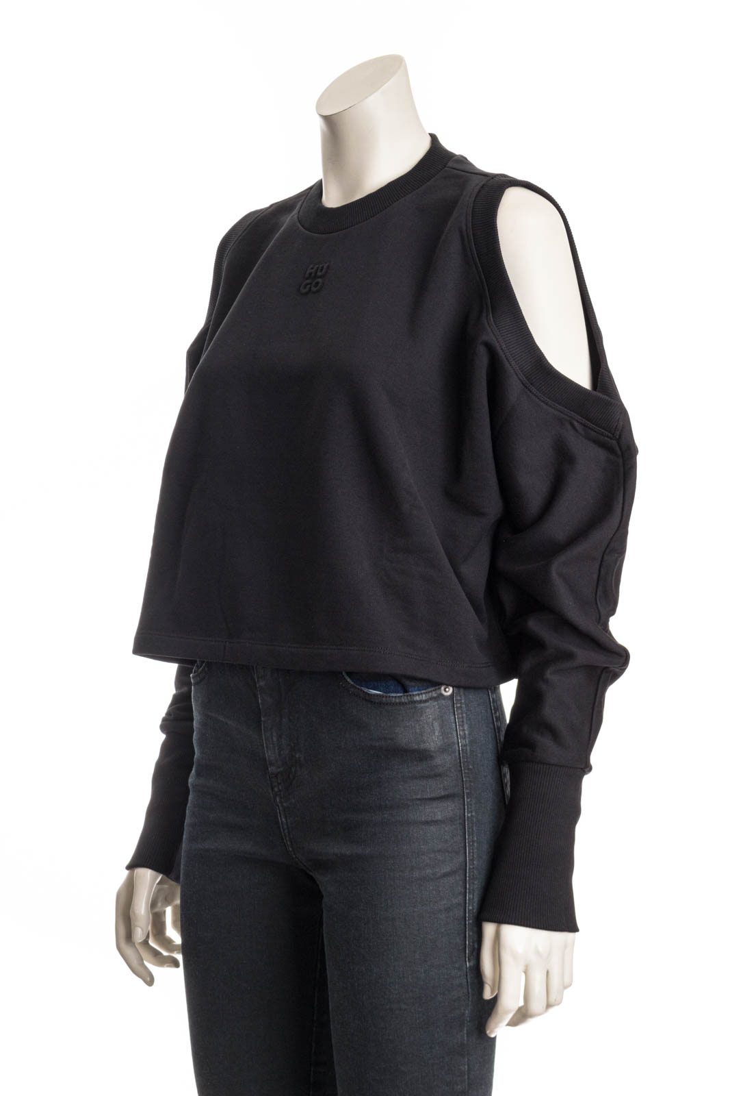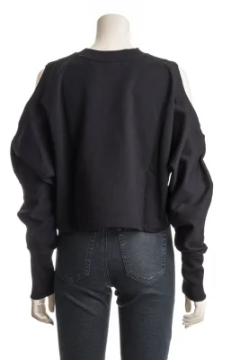 Kastig geschnittenes Sweatshirt mit extra langem Arm und Cut-out an den Schultern.