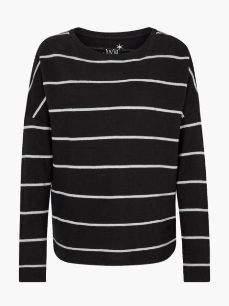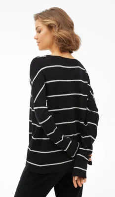 Das feine Streifen-Design verleiht dem schwarzen Sweater in Loose-Optik ein stilvolles Update. Überschnittene Schultern und ein femininer Rundhalsausschnitt ergänzen den Look, der in superweicher Cashmere-Mix-Qualität begeistert.