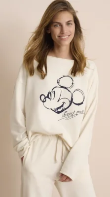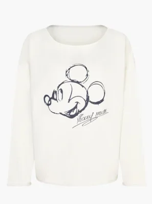 Der „Mickey Mouse“ Frontprint im illustrierten Design zeichnet das Sweatshirt in Eggshell als favorisiertes Stylingpiece aus. Überschnittene Schultern und cosy Rollsaumabschlüsse ergänzen den ikonischen Look, der im weichem Baumwoll-Mix mit angerauter Innenseite überzeugt.