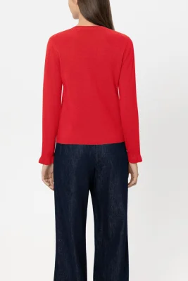 Feinstrick-Pullover aus edler Kaschmir-Mischung mit gerippten Bündchen an Ärmeln, Saum und Rundhalsausschnitt. Die Ärmelabschlüsse haben eine leicht ausgestellte Form.