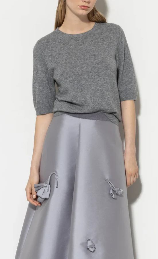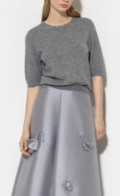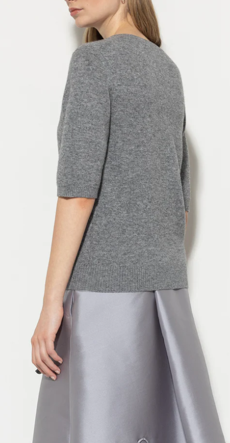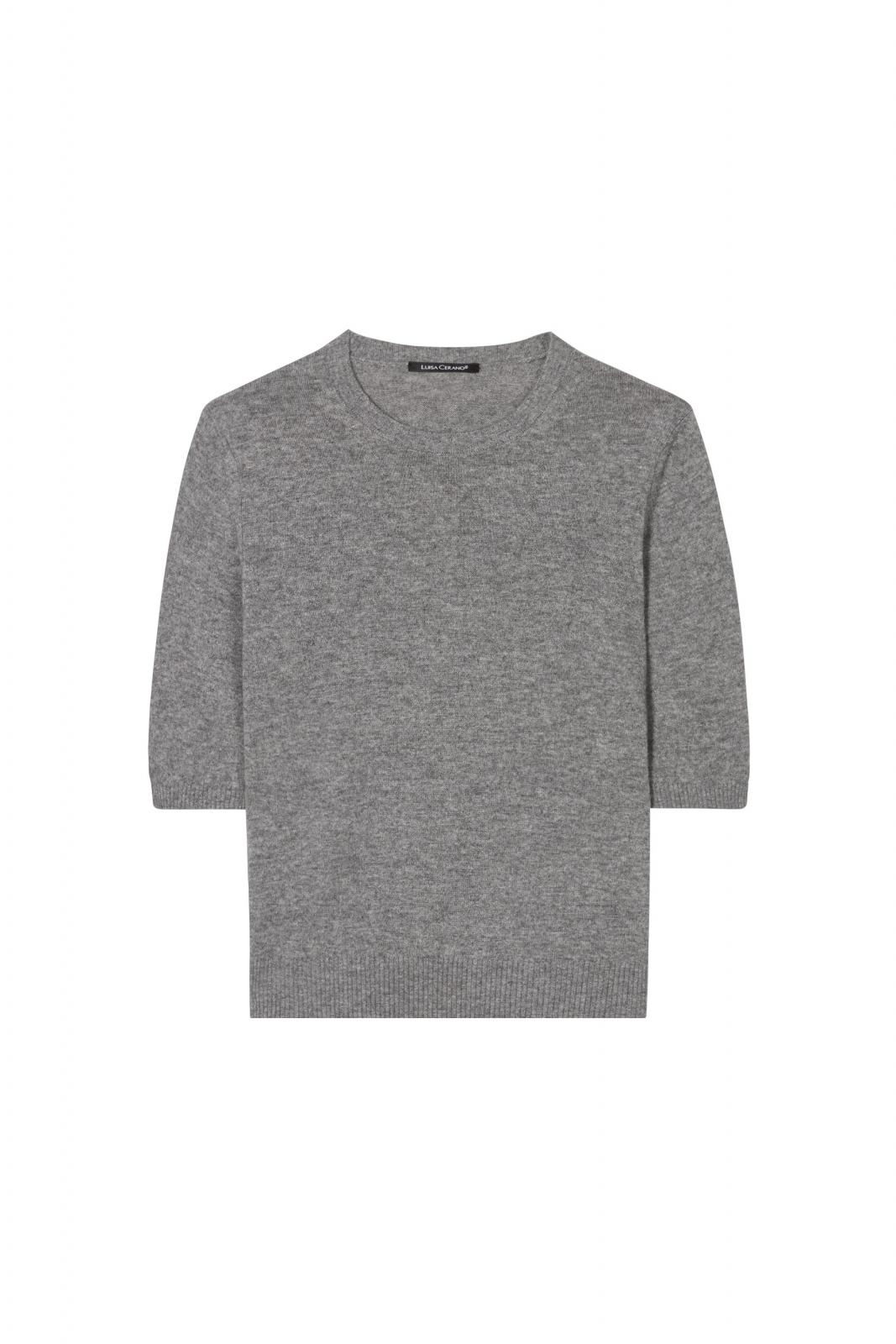 Kurzärmliger Strickpullover aus weichem Kaschmir-Mix. Das klassische Design zeichnet sich durch einen Rundhalsausschnitt und gerippte Abschlüsse aus.