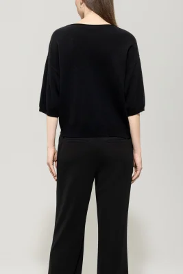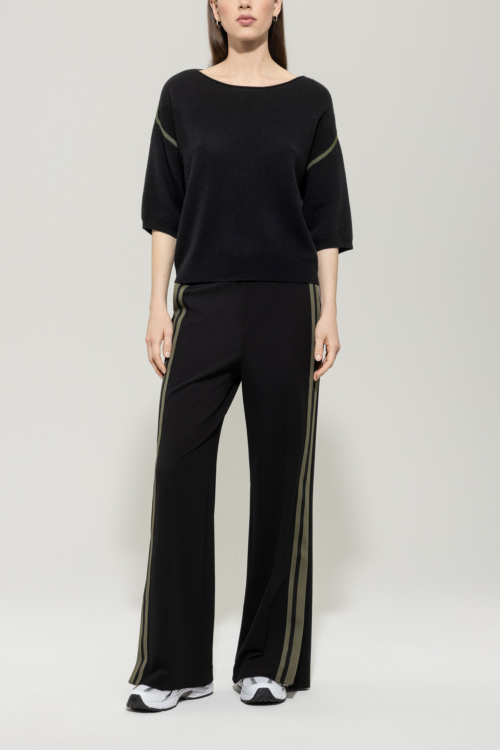 Locker geschnittener Pullover aus weichem Kaschmir-Mix mit Rundhalsausschnitt und halblangen Fledermausärmeln. Farblich abgesetzte Streifendetails setzen sportive Akzente.