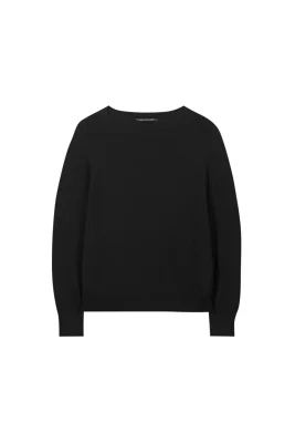 Komplett nahtlos gestrickter Pullover aus crĂŞpiger Baumwoll-Mischung mit Rundhalsausschnitt. Die Optik wird durch die Link-Struktur gekennzeichnet.