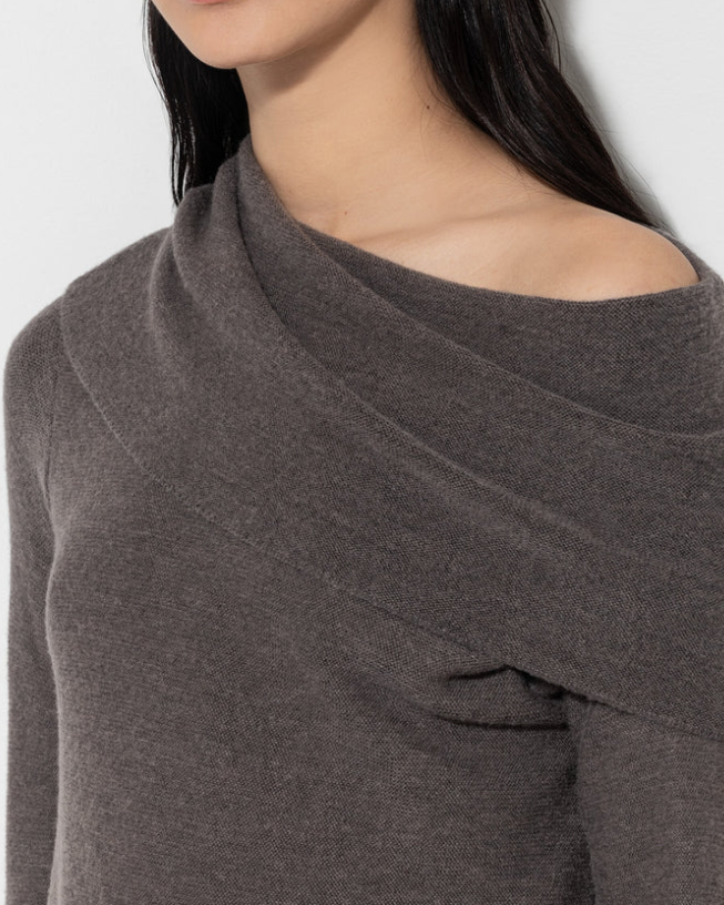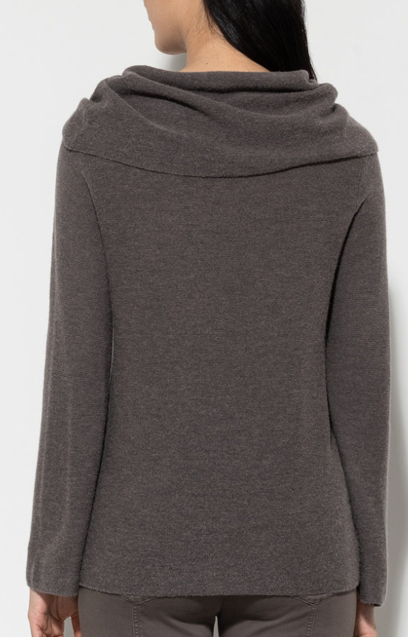 Feinstrick-Pullover mit Links-Struktur aus einer Woll-Lyocell-Mischung in legerer Passform. Der breite Schalkragen bedeckt die Schultern und kann auch off-shoulder getragen werden.