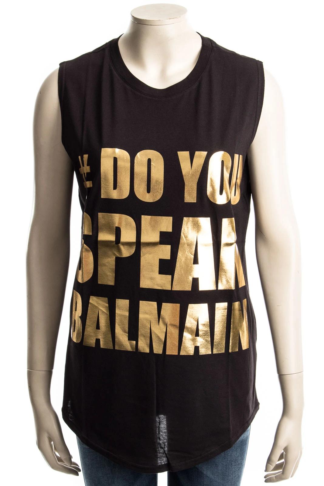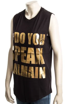 Dieses Top passt sich jedem exklusiven Outfit mit seiner goldfarbenden Schrift an.