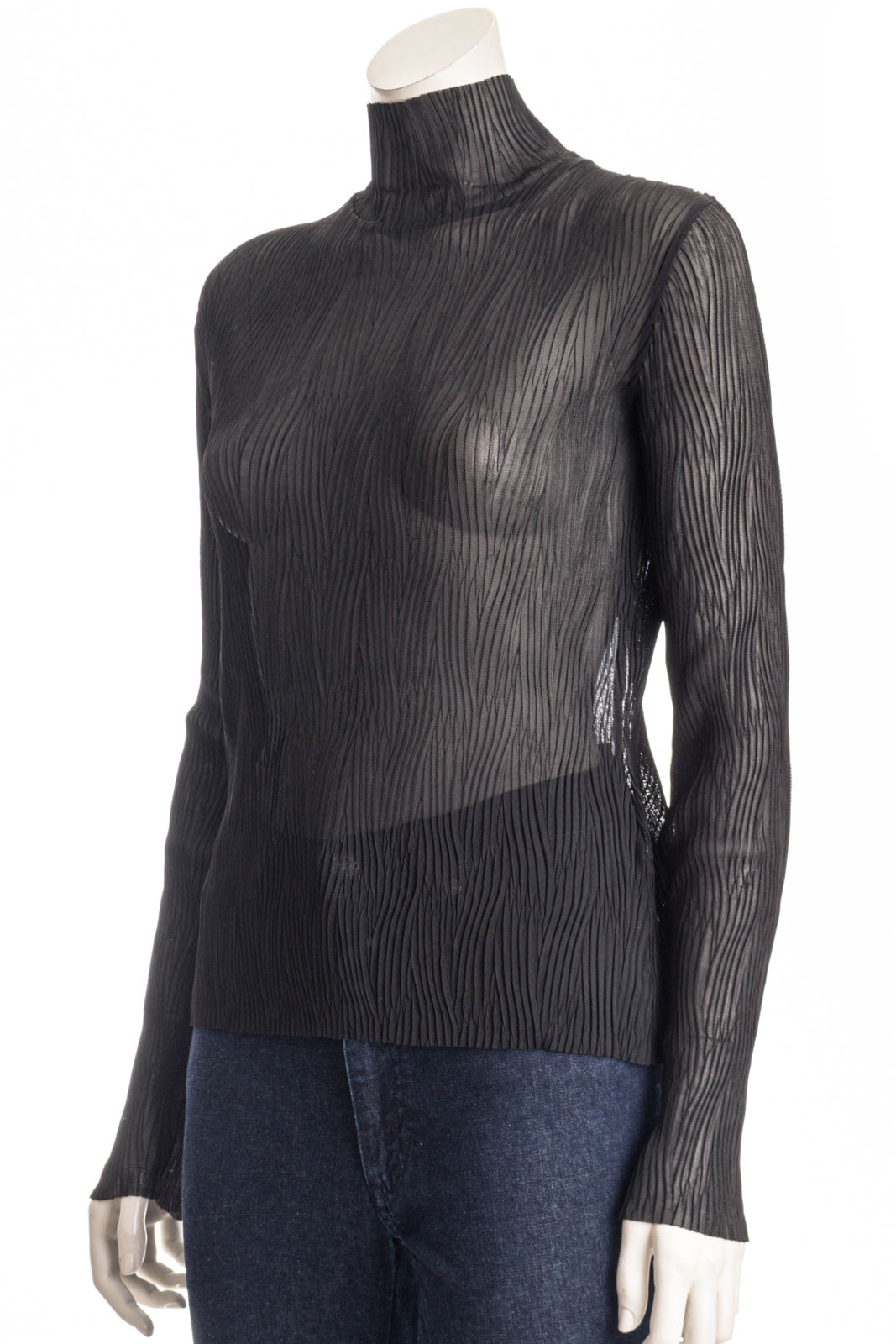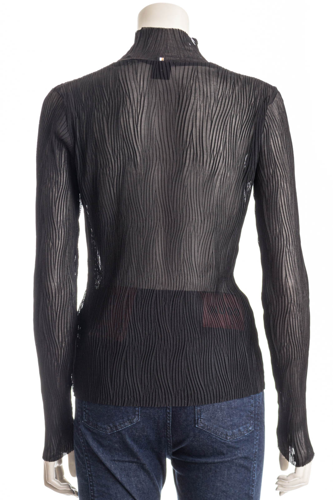 Feminines BOSS Top mit Stehkragen. Der Langarm-Style ist aus leichtem TĂĽll mit Plissee-Falten gefertigt.