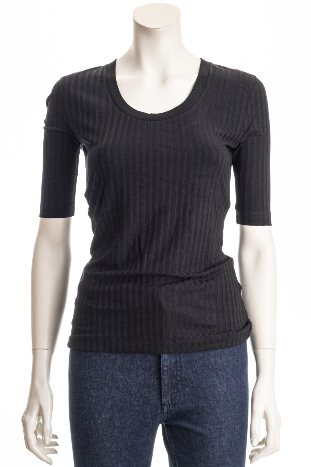 Geripptes BOSS Top mit verkürzten Ärmeln. Der Style mit U-Ausschnitt ist aus einem soften Stretch-Gewebe gefertigt.