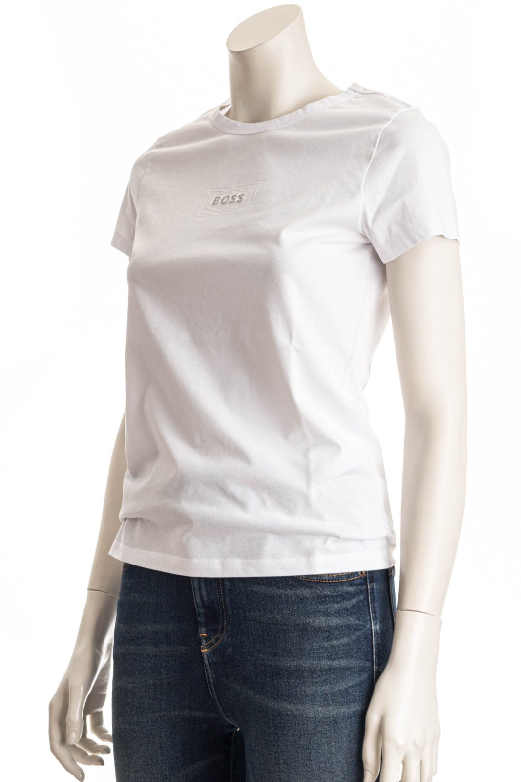 Schmal geschnittenes T-Shirt mit durchbrochenem BOSS-Logo auf der Brust.