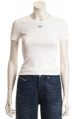 Das T-Shirt mit rundem Halsausschnitt und schmaler Passform. Das metallische, im Spritzgussverfahren aufgebrachte Oval-D-Logo auf der Vorderseite direkt unter dem Kragen setzt einen markanten Akzent.