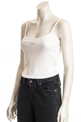 Schmal geschnittenes Top mit dünnen Trägern und rundem Ausschnitt. Aus fein geripptem Stretch-Baumwollstoff gefertigt, sorgt es für Komfort und Bewegungsfreiheit. Ein besonderes Merkmal ist das unterhalb des Ausschnitts eingeprägte, metallisch injektionsgedruckte Oval-D-Logo.