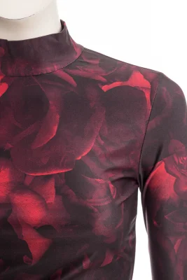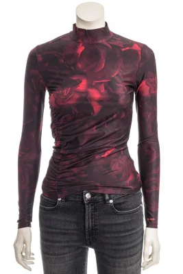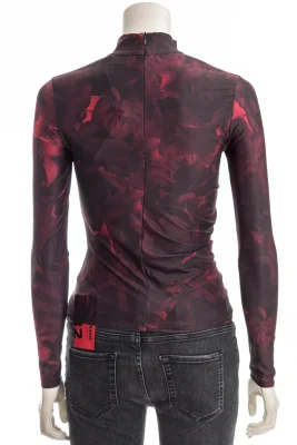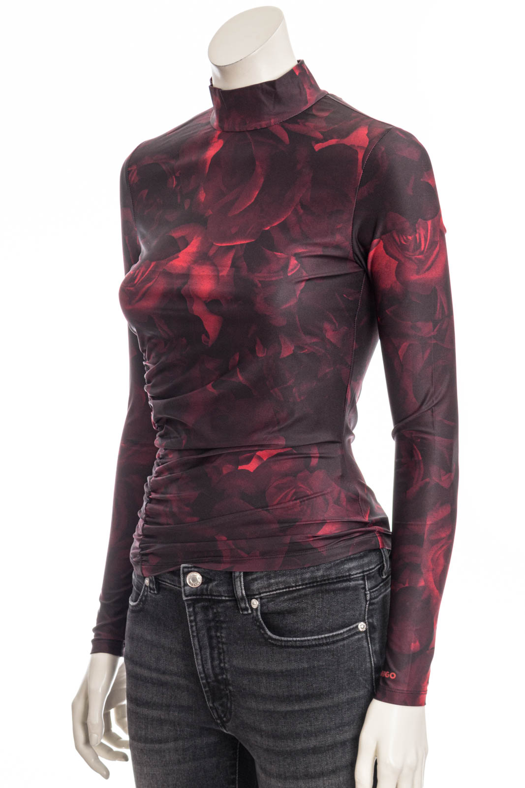 Gerade geschnittenes HUGO Top aus Stretch-Jersey mit Stehkragen und RĂĽschen-Detail auf der Vorderseite.