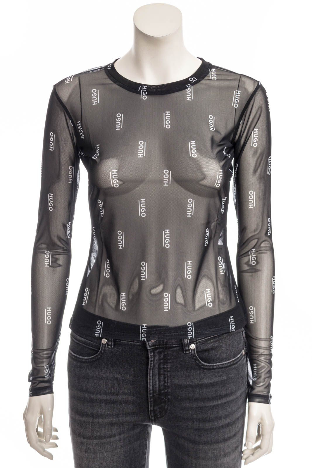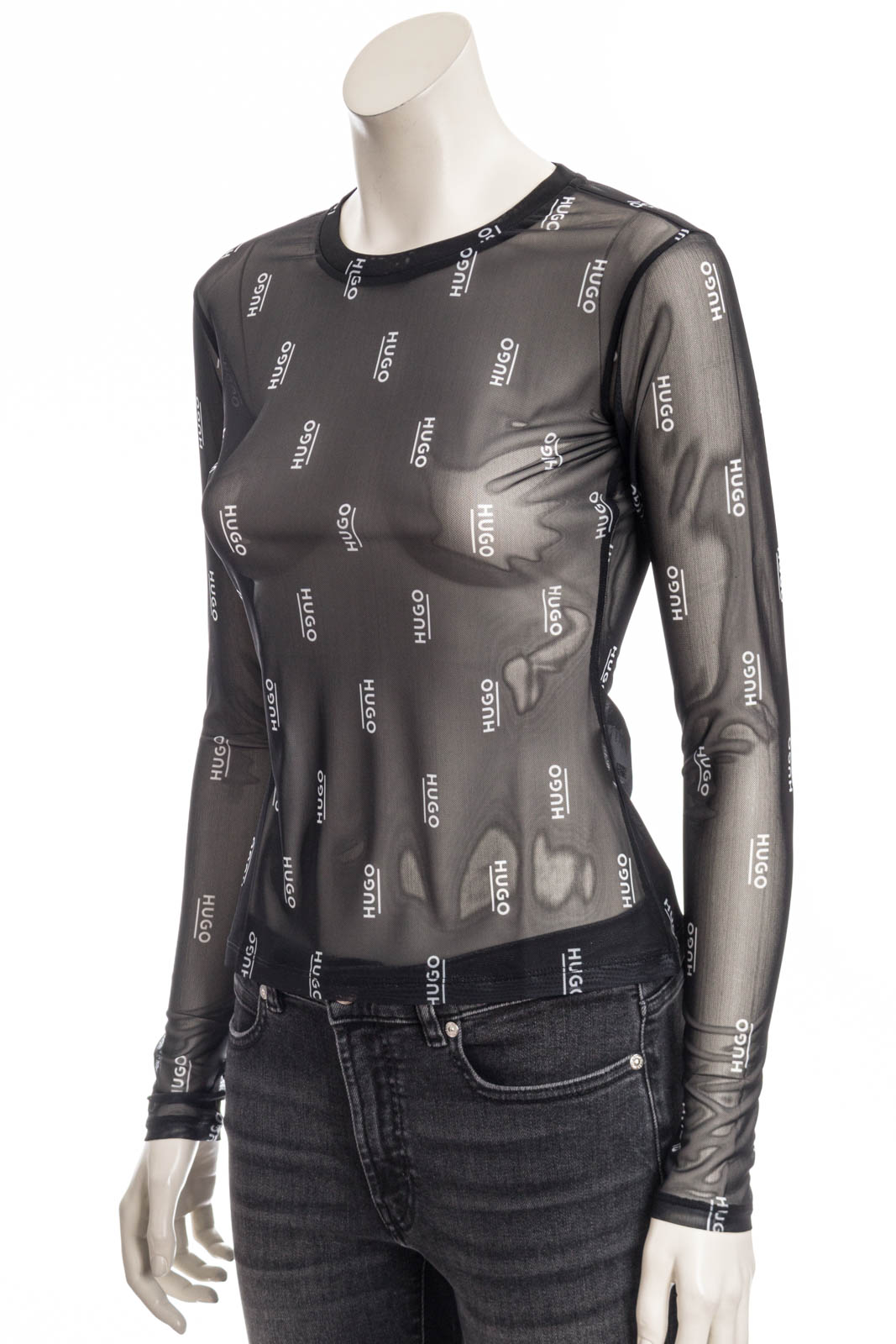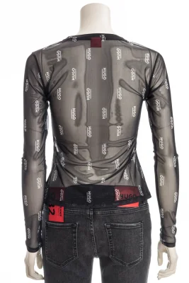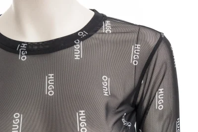 Schmal geschnittenes HUGO Longsleeve aus bedrucktem Stretch-Mesh.