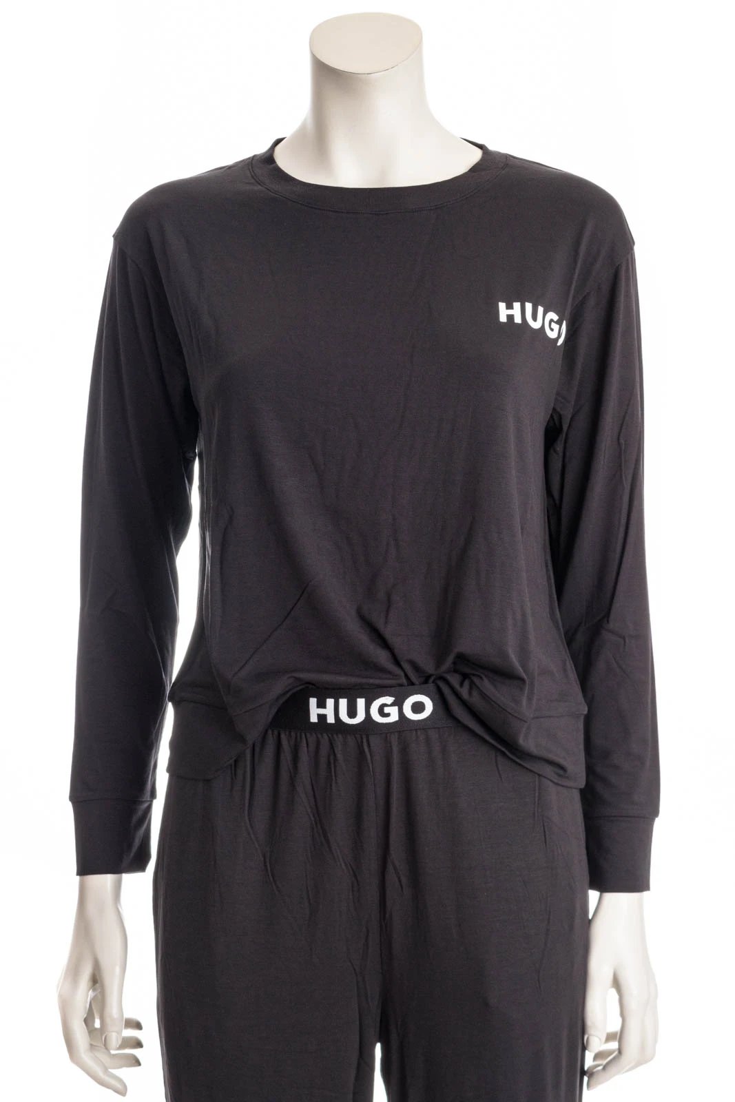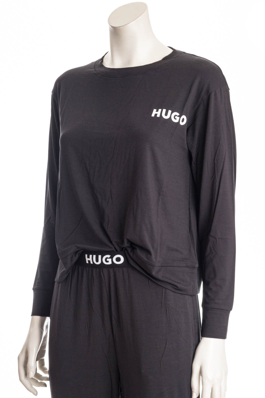 Locker geschnittenes HUGO Pyjama-Top aus leichtem Stretch-Jersey mit langen Ärmeln und Logo-Print auf der Brust.
