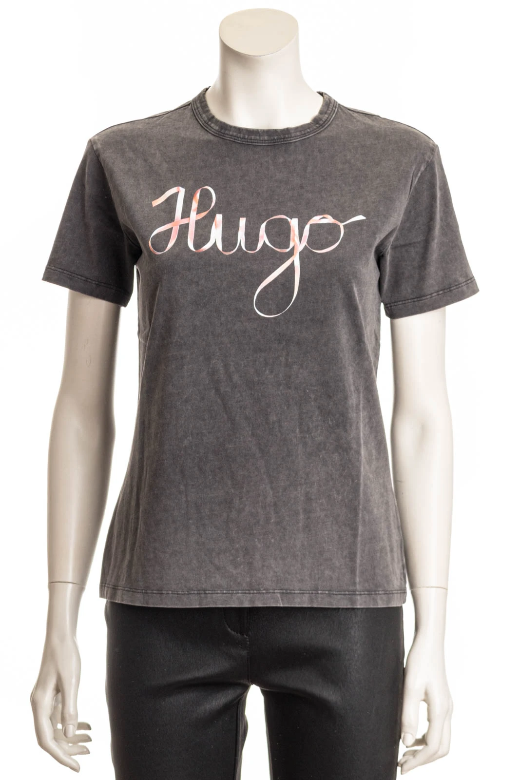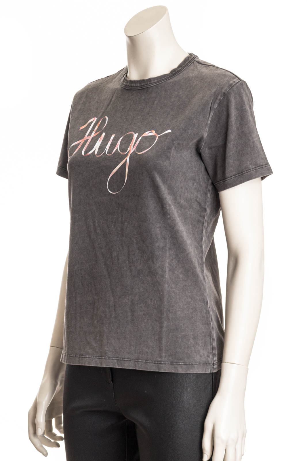 Verpasse deiner Casual-Kollektion mit diesem HUGO T-Shirt mit einem verspielten Logo-Motiv ein frisches Upgrade. Aus bequemem, gewaschenem Baumwoll-Jersey. Gerade Passform.