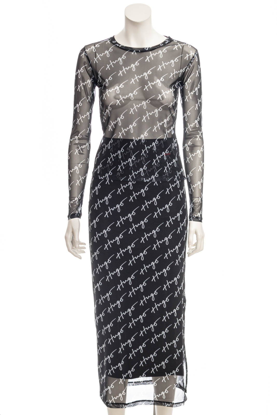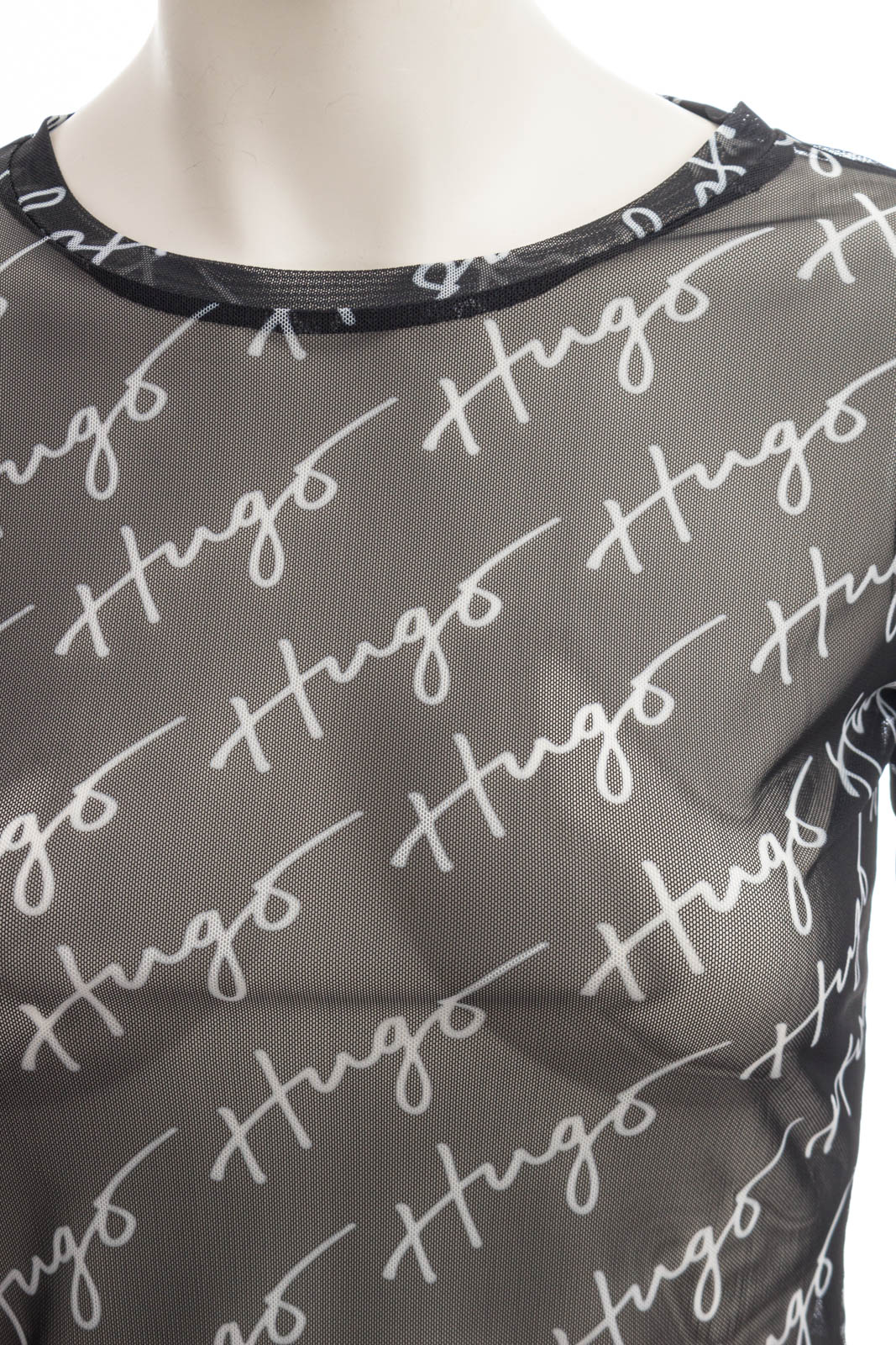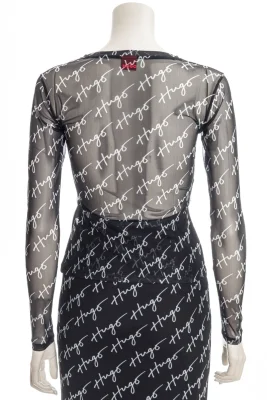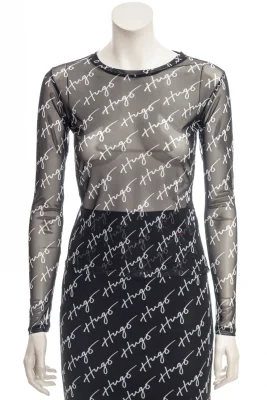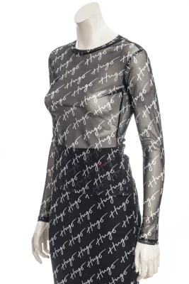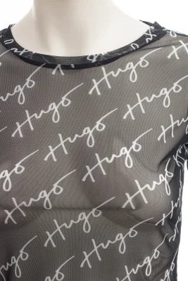 Schmal geschnittenes HUGO Longsleeve aus Stretch-Mesh mit handgeschriebenen Logos.