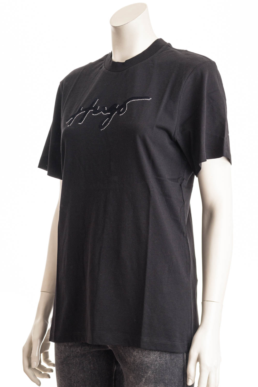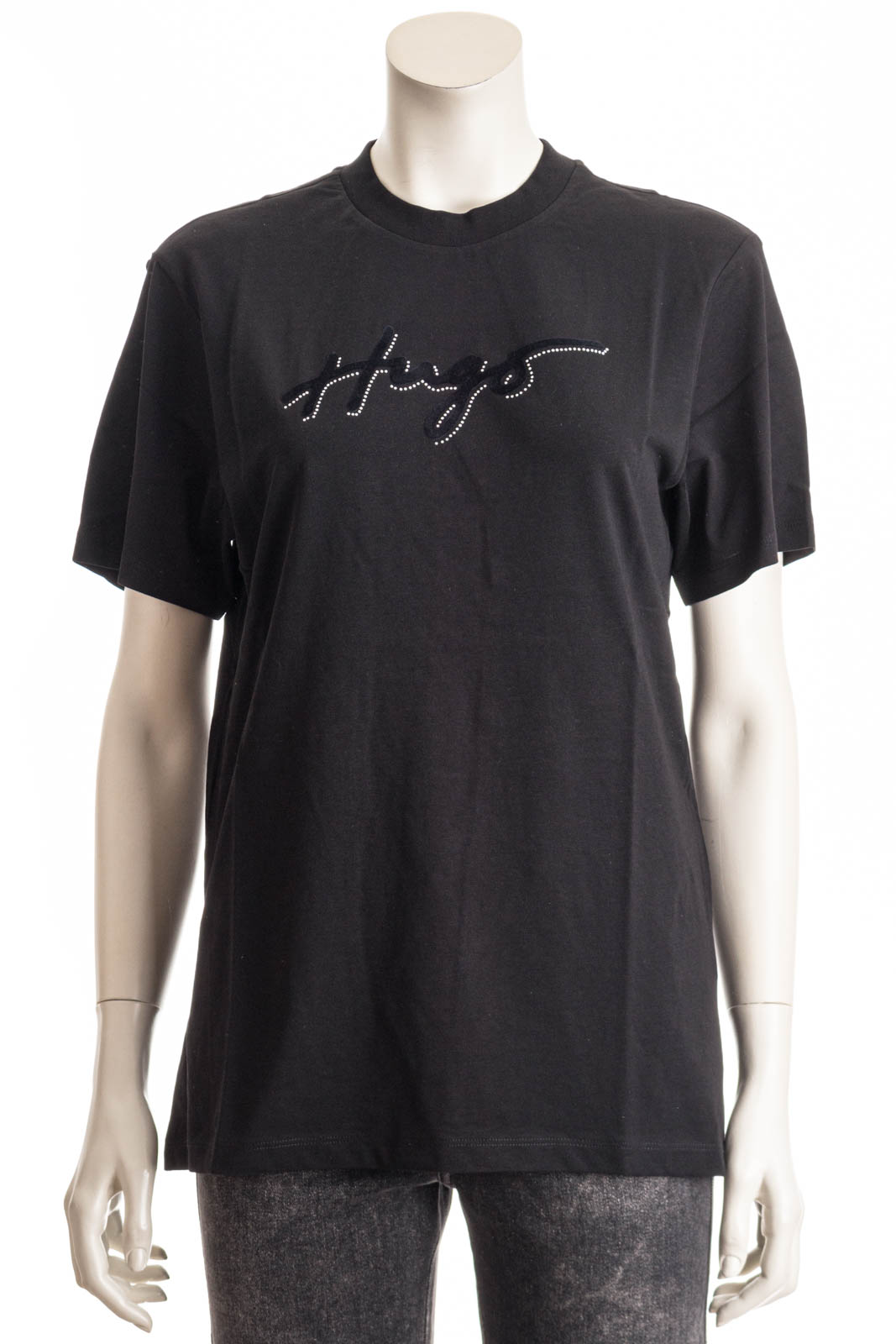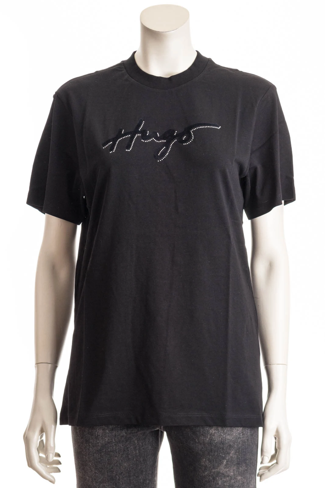 HUGO T-Shirt im Vintage-Look. Das locker geschnittene Top aus softer Baumwolle hat ein geflocktes Logo, das von Strasssteinen eingerahmt wird.