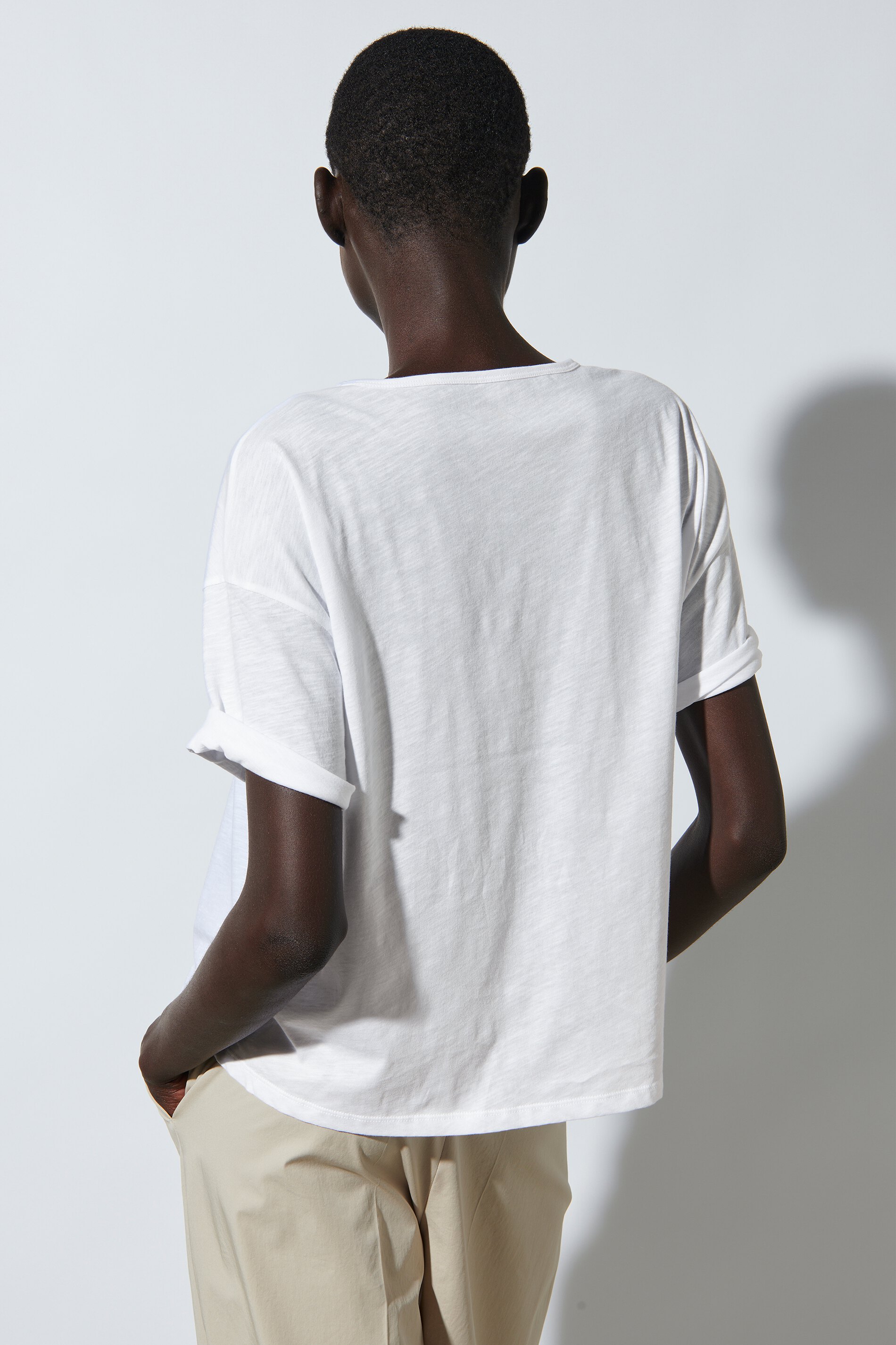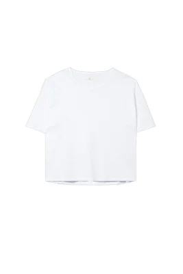 Kastig geschnittenes T-Shirt aus reiner Baumwolle mit Rundhalsausschnitt. Die überschnittene Schulterpartie und die feine Slub-Struktur geben dem Shirt ein lässiges Design.