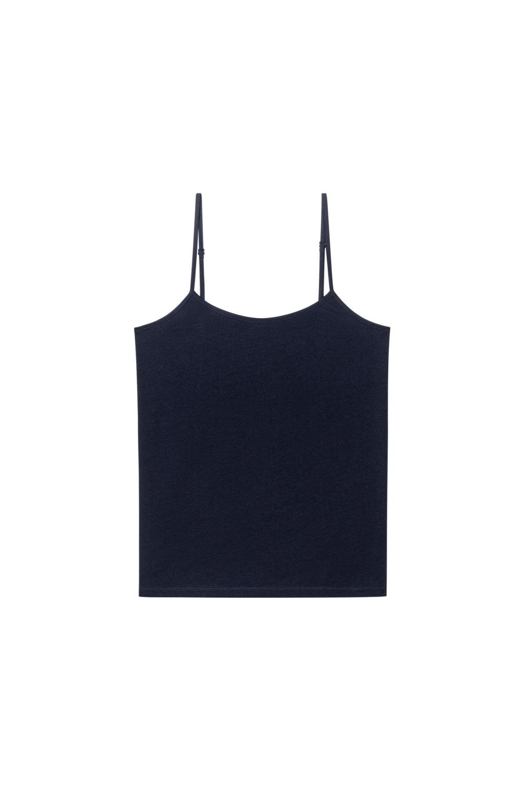 Einfaches Top aus hochwertigem, weichem Baumwoll-Modal-Mix. Die schmalen Spaghettiträger lassen sich in der Länge verstellen.
