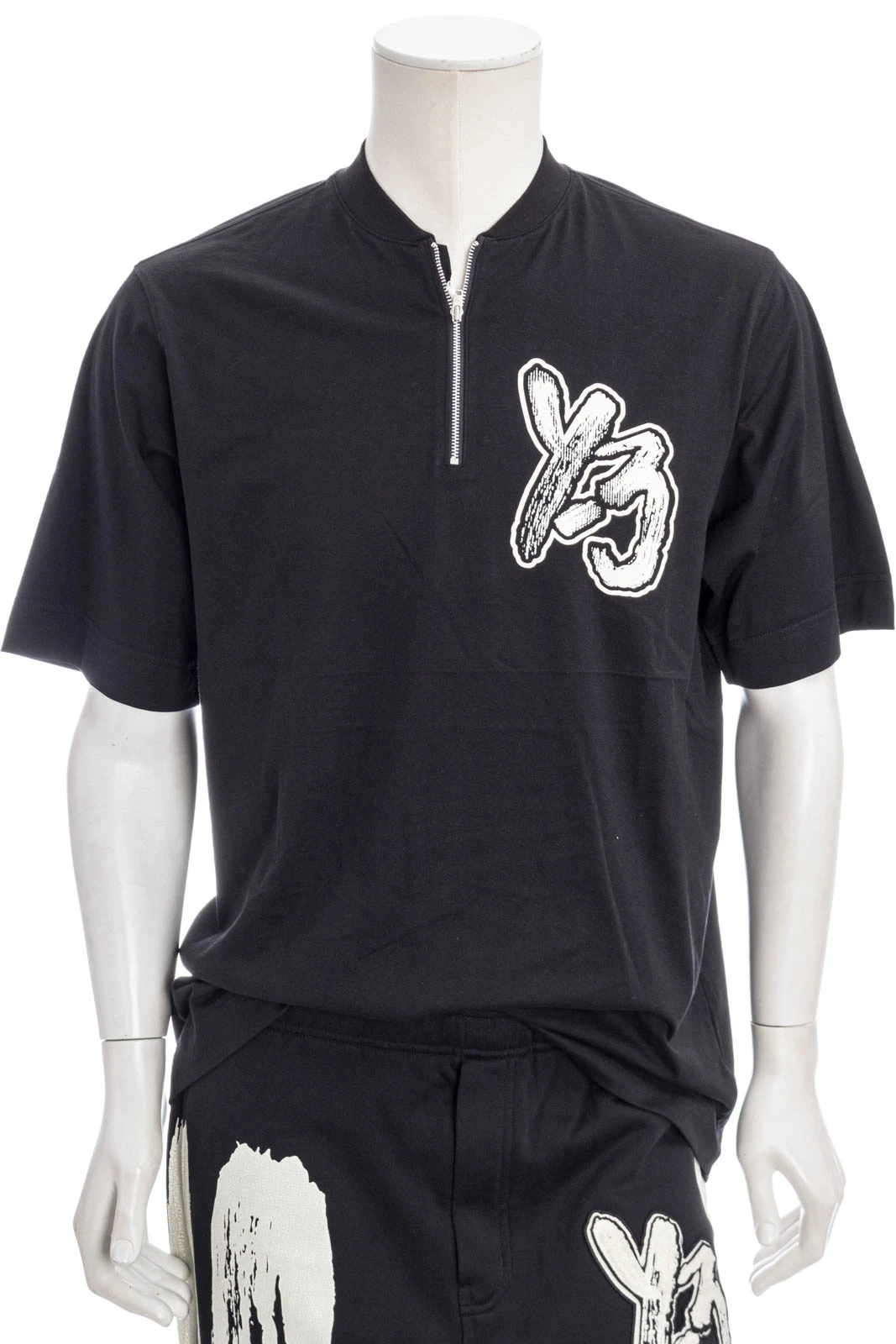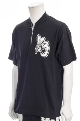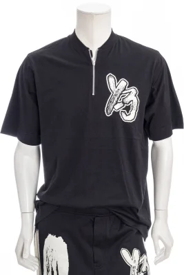 Oversized-Shirt mit ReiĂźverschluss am Kragen und Y-3 Label Print auf der Brust.