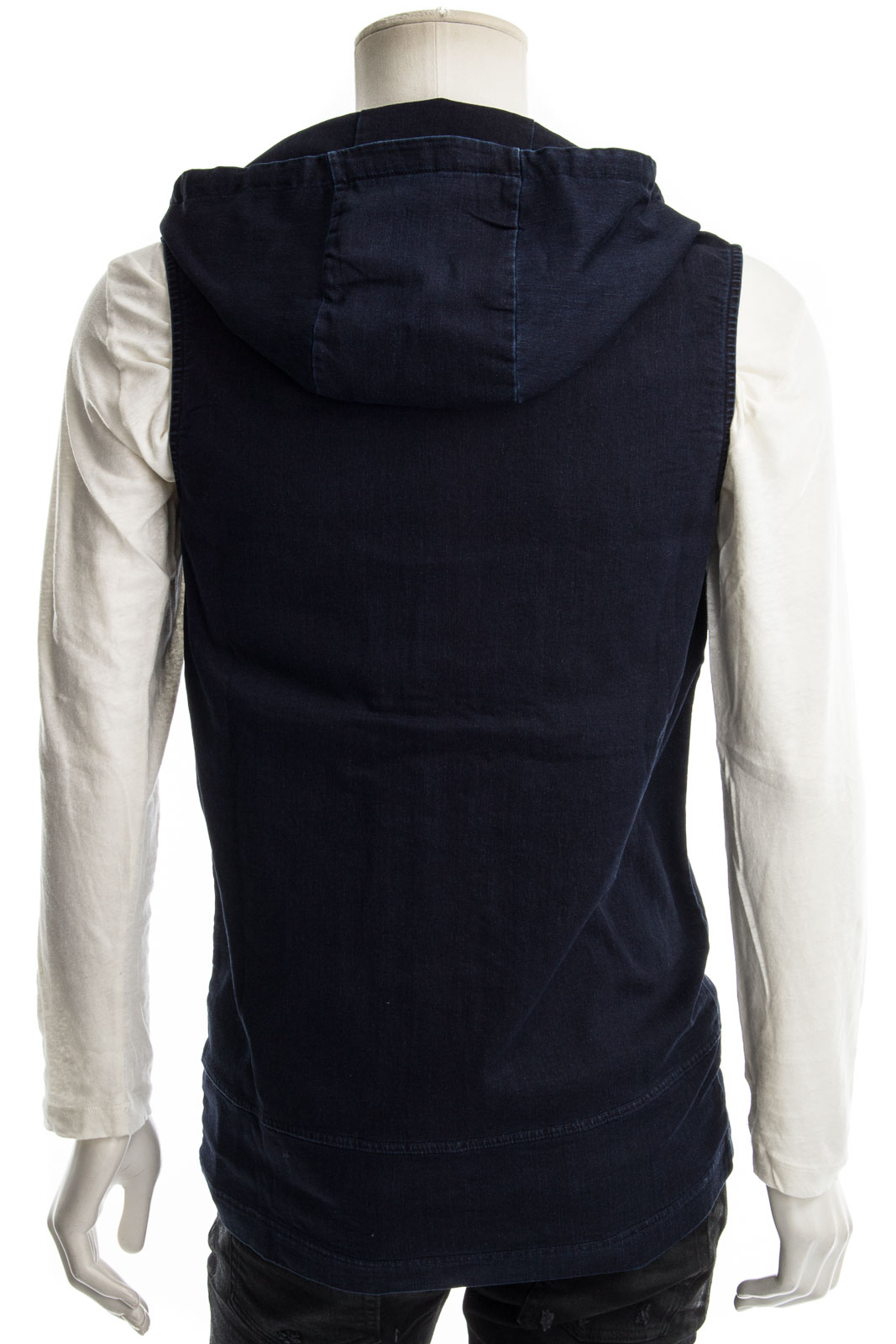 Stylische Jeansweste mit ReiĂźverschluss und Kapuze.
